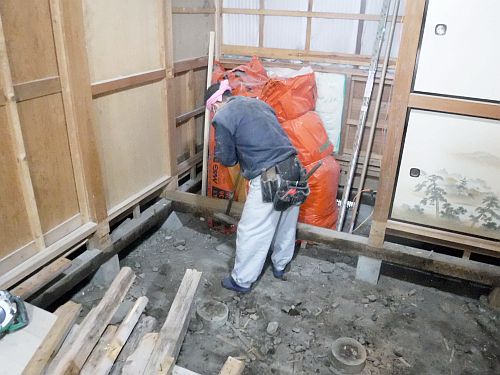 タタミ下地床を剝がしたら大引がシロアリ被害をうけていたので