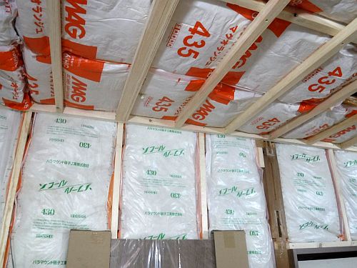 壁・天井にグラスウール断熱材をいれました。