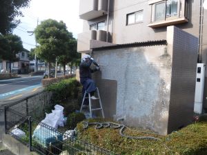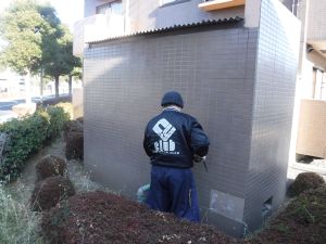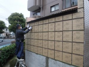羽村市のA様より、マンションガス置場のタイルが剥がれているので
