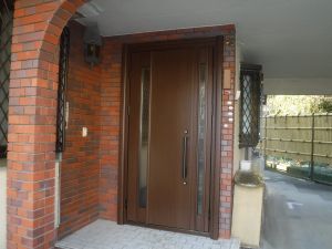 本日、あきる野市のH様にて1日で新しい玄関に変えられる