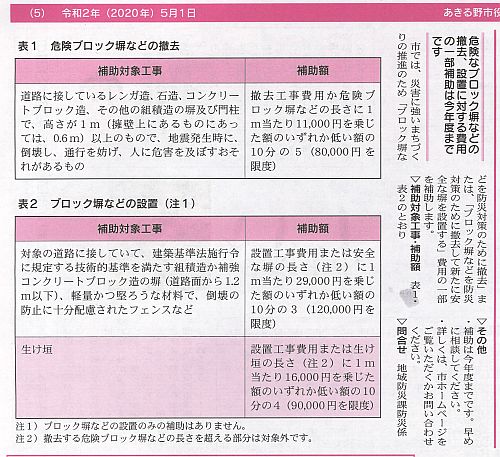 あきる野市でリフォーム・新築・建替えを仕事にしているヨコタ総建です。令和2年のあきる野市役所から道路境界に隣接しているブロック塀に対して安全に配慮した境界壁にするための補助金がでます。