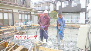 ↑バイブレーダの先端は鉄筋や金物、埋め込み配管などになるべく触れないようにして、