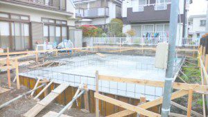 I様邸の新築工事、本日は基礎底盤部にコンクリートを流しました。