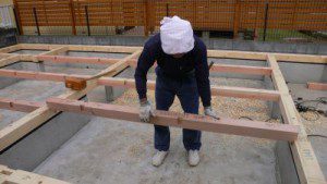 ↑基礎と土台の間には基礎パッキンを挟みます。基礎パッキンは床下換気能力に