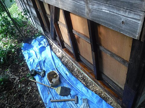 あきる野市で新築・リフォーム・耐震改修を仕事をしているヨコタ総建です。八王子市のお客様より外の納屋を直してほしいとご連絡を頂きました。御見積を提出し、了解が頂けましたので本日から納屋補修リフォームを始めました。