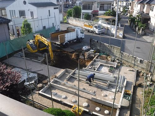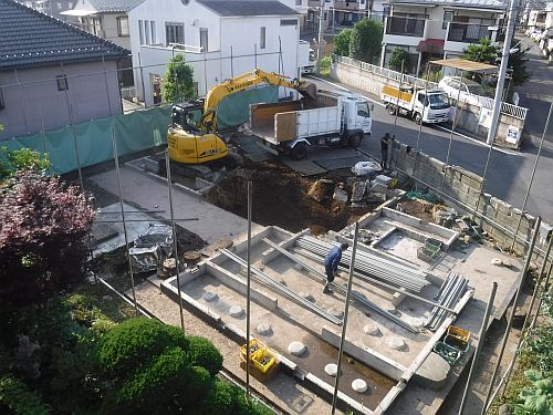 あきる野市で新築・リフォーム・耐震改修を仕事をしているヨコタ総建です。2世帯住宅へ建て替えするあきる野市のお客様、上物が解体できました。防護ネットを外して進捗状況がはっきりしてきました。