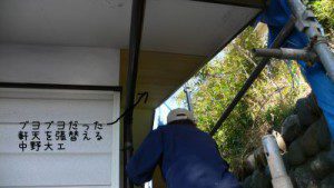 ↑軒天がブヨブヨと悪い所を中野大工に張替えてもらいました。