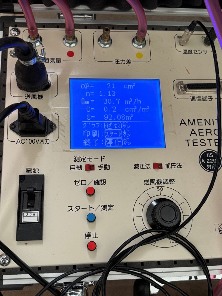 昭島市の現場も工事が進み、気密測定を実施いたしました。