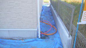 ↑弊社では、足場の下の古いブルーシートいつも敷いております。