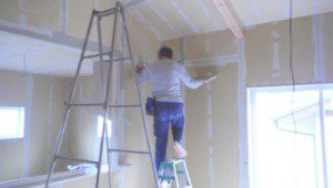 ↑クロス屋さんも工事はじまりました。パテ下処理開始です。