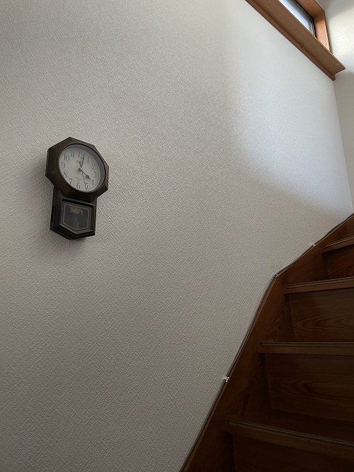 玄関・廊下・階段廻りも白色系クロスを張替ましたので、家全体が明るいです。近年のクロスは色、柄いろいろございますので、お客様好みのクロスにきっと出会えます。あきる野市K様様ありがとうございました。