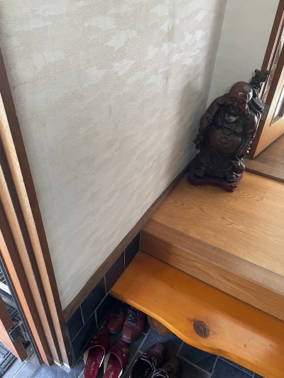 施工前写真です。玄関内で上り下りの支えになるような手摺を付けます。