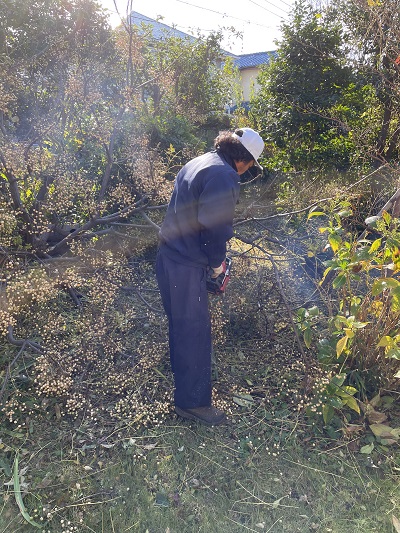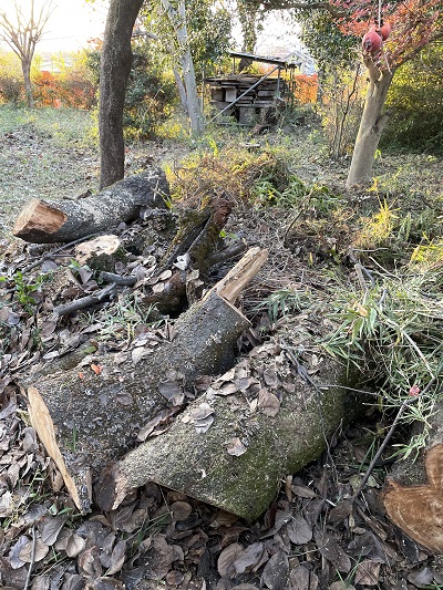 伐採屋さん7人でお庭の草刈りと大きな木4本、1日かかりで行いました。