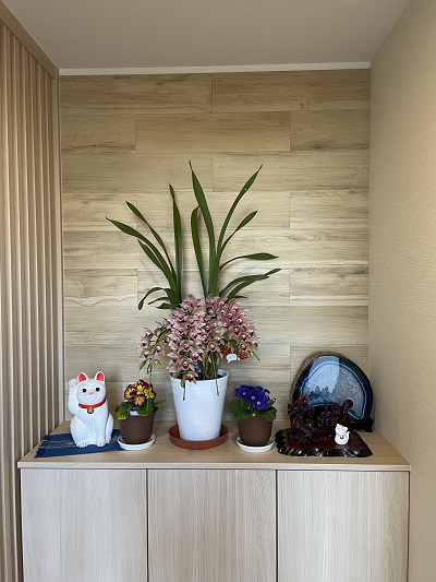 施工前写真です。和風のきれいな玄関です。エコカラットが映えそうな壁です。