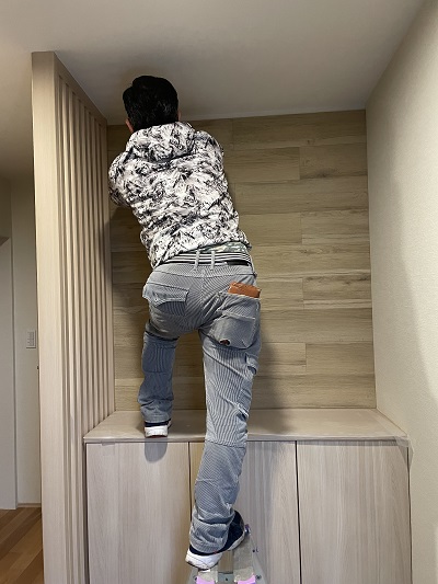 施工中です。今回はビンテージオークという風合いある木目柄のデザインです。