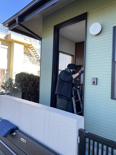 現地調査の結果玄関枠が歪んでいるので工事期間一日で済む玄関ドアリフォームをご提案致しました。ご採用していただきましたので、早速段取りに入りました。