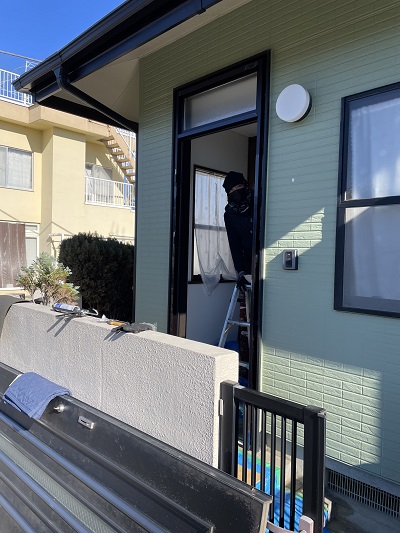 12月19日9時より工事スタートです。古い玄関扉を外して、枠のみの状態にします。