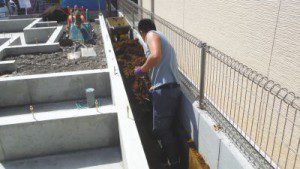 ↑境界ブロックまで幅がありませんので、作業が大変です。