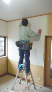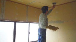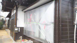 外壁の貼り直し、今日は外壁塗装を行いました。