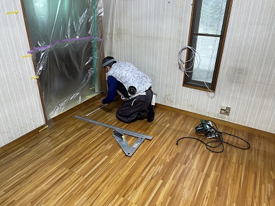 ブカブカしている床部分に穴を開けさせていただいて床下の状況を確認しました。