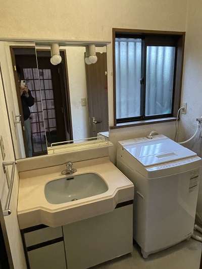 工事前になります。まだまだキレイだったのですが、収納量を増やし、使い勝手を良くするために今回洗面脱衣室のリフォームもお風呂リフォームと一緒に行うことになりました。