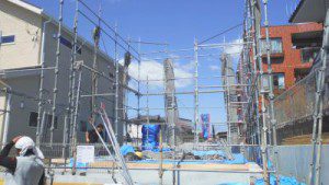 青梅市のN様邸 注文住宅、一時大工工事をやめて足場を設置します。