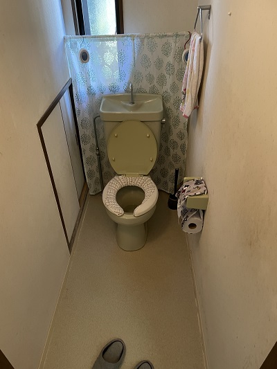 施工前写真です。トイレが1か所しかないお宅でしたので絶対に1日で新しいトイレを使えるようにするのに気を配りました。