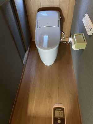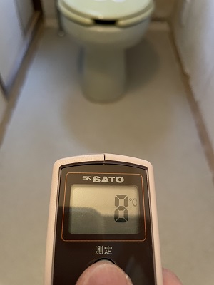 トイレ床材を張り替える前に高性能断熱材を敷きましたので、底冷え対策になったと思います。床の温度は施工前が8℃で施工後が11℃になりました。3℃の差は大きいと思います。これで水廻りリフォームは完成しました。