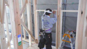 ↑窓を付ける前のまぐさ、窓台の準備しています。