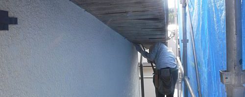 引き続き軒天破風補修リフォームしています。