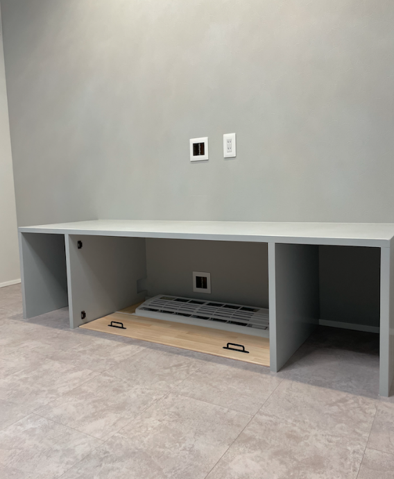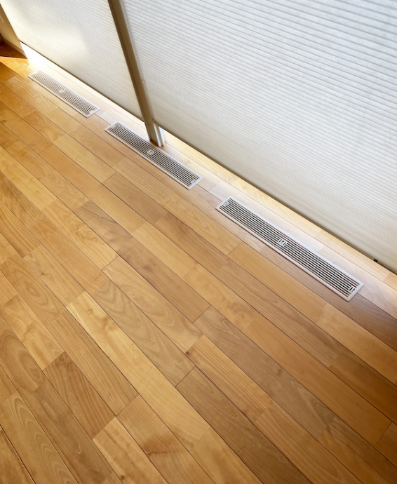 床下エアコン暖房システムの利点は、家全体が床を通して均一に暖かくなることにあります。たとえ高断熱・高気密の住宅であっても、従来の壁掛けエアコンを使用して暖房すると、足元の冷えが問題となることがあります。しかし、床下エアコン暖房なら、リビングダイニングキッチン(LDK)だけでなく、洗面所やトイレなど家全体を暖かく保つことが可能です。また、最大の温度が24℃程度になるため、無垢材のフローリングなどどんな床材も制限なく使用できる点も大きなメリットです。