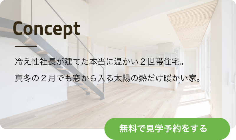 ZEH性能をはるかに上回る断熱性能、気密性能の2世帯住宅です。一年で一番寒い時期の2月に性能重視の注文住宅を体感してほしいです。弊社モデルハウスを体感してから、他の住宅会社さんの見学に行って比べて下さい。お気軽にご連絡下さい。