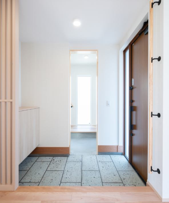 家を構成するさまざまな素材。木、鉄、石、タイルなど素色褪せることのない洗練されたデザインに、日々の暮ら材が持つ本来の良さを引き出すからこそ、表情豊かな しを考えた住まい。装飾タイルや無垢の木、アイアン材住まいが出来上がります。空間に溶け込み肌に触れるなどシンプルな装飾によって室内を引き立てます。素材を選び抜いた内装です。
