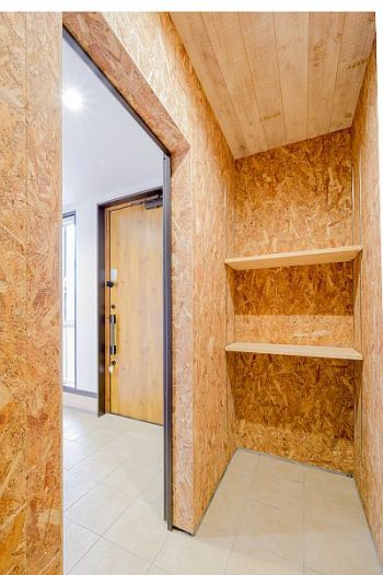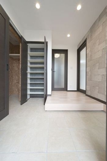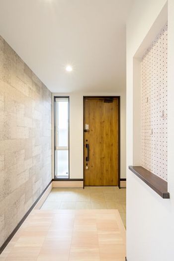 玄関内に1帖分の土間収納スペースを設け、外で使うものやコートを納められるようにしました。