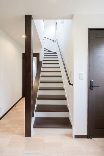 暗くなりがちの廊下ですが、階段脇の腰壁を低くすることで、2階窓からの光が差し込み、照明が無くてもきもちのよい明るさになりました。