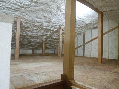 『小屋裏にはたくさんの荷物がおけるようにしたい』と言うのが、建替えの一番のご要望でしたので、床、壁の仕上げは行わず、なるべくコストを抑えました。荷物の出入はスムーズにしたいので固定階段で小屋裏に行けるようにしました。