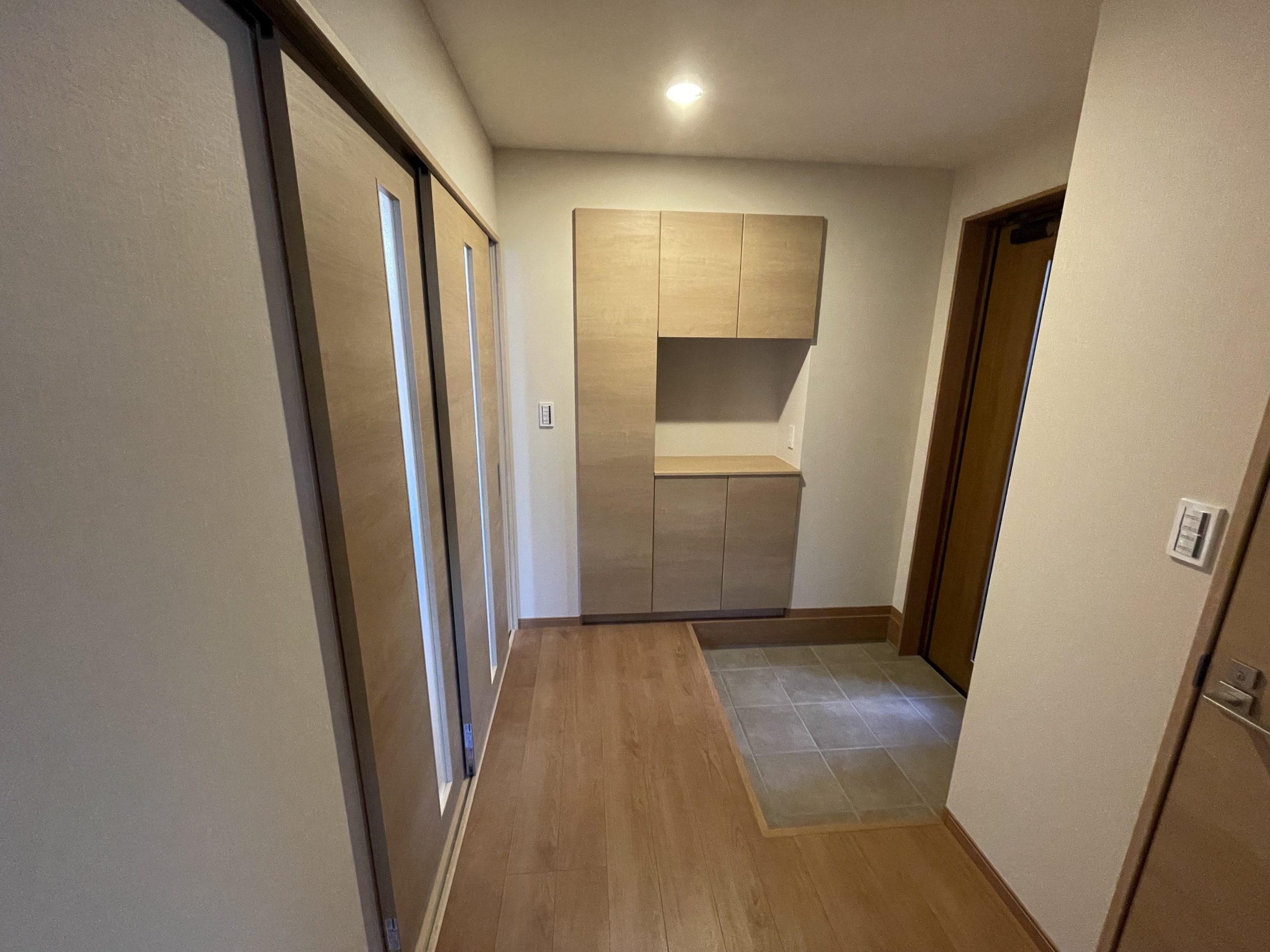 木目柄の軒天キレイです。軒天を化粧にするだけでも注文住宅、デザイン性が上がるような気がします。